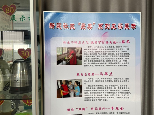 “榜样力”点亮“新风尚”,典型引领润物无声。社区深入开展“最美”系列评选活动,在新时代文明实践站设立风采展示区,广泛宣传先进事迹,用身边人影响身边人,用身边事教育身边人,营造出学习典型、争当先进的浓厚氛围。同时组织典型代表走进社区、走进楼栋,通过“身边人讲身边事”的方式,让文明新风的宣传更接地气、更入人心。