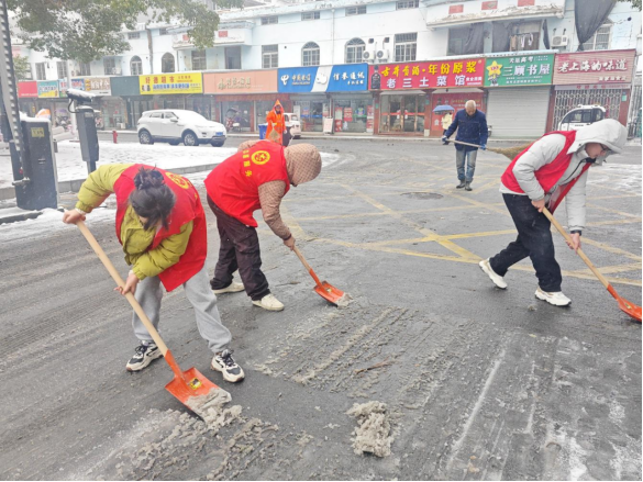 1月20日,寒潮裹挟雪花席卷辖区,道路积雪结冰给居民出行带来极大安全隐患。而此时,繁阳社区自1月9日起接手辖区物业服务应急管理工作,正处于物业交接过渡期。面对雪情与服务空当的双重考验,社区迅速启动应急响应,以“雪情就是命令,安全就是责任”为准则,组织工作人员、网格员、临时保洁人员及党员志愿者开展全方位防寒除险行动,用实干为居民筑牢冬日安全防线。