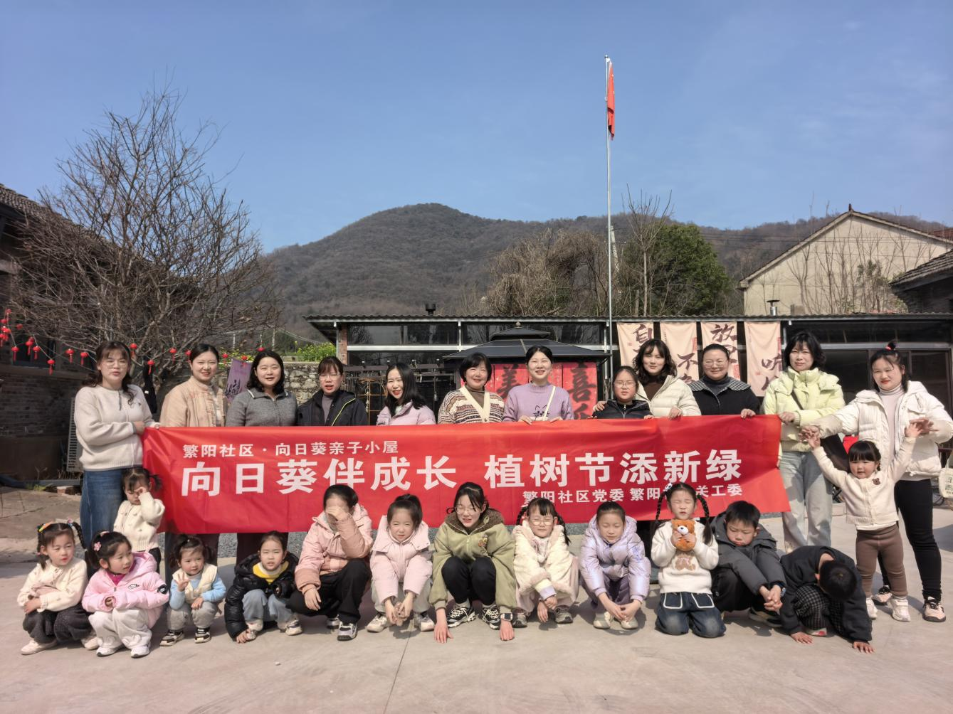 3月8日下午,在植树节来临之际,繁阳社区组织18组亲子家庭走进峨山镇柏树村,开展“向日葵伴成长植树节添新绿”亲子植树活动,在春日暖阳中共同种下桃树,用绿色行动迎接植树节。