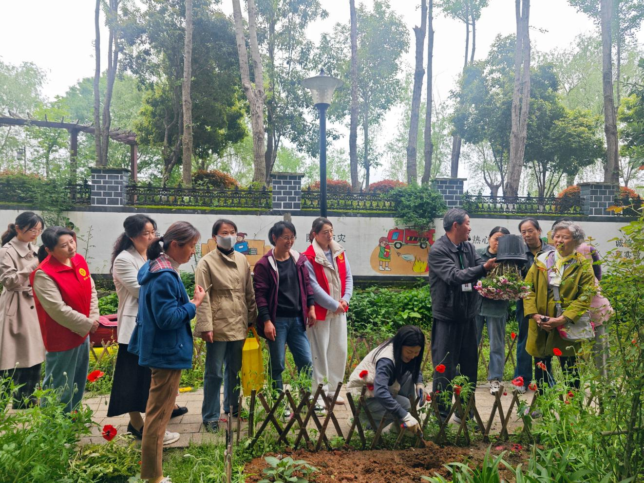 2026年4月13日,繁阳社区党委在繁阳三区“共建花园”举办花苗种植工坊活动。老年大学园艺教师江声启现场教学,十余名新老“花友”学习种植与病虫害防治知识。花园一角的圆桌小凳,成为居民歇脚聊天的聚集点。这块曾经因闲置而管理薄弱的公共空间,如今已成为邻里交往、协商议事的红色阵地。