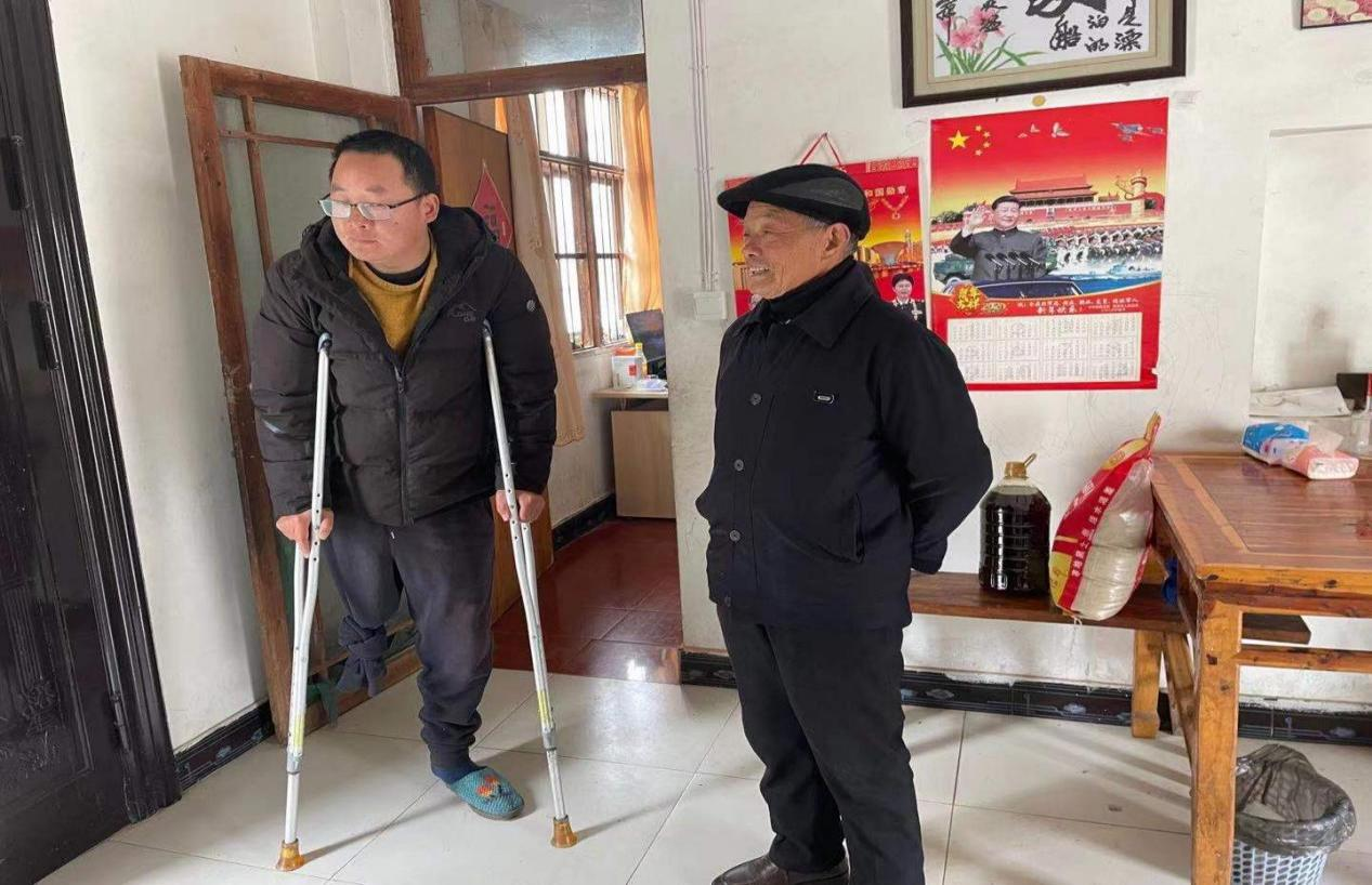 本次走访对象为村里“低保户”黄小兵,几年前因血友病截肢一条右腿,无妻子相伴,膝下一子上小学,无维持正常生活收入来源。在慰问中,关工委主任储根普亲切细致地询问了他的身体情况和需求,告诉他日常生活中有什么实际困难要及时向村委会反映,并鼓励他说:“要保持积极客观的生活态度,树立信心,往后的日子一定会越来越好。”同时将饱含爱心的大米、食用油送到他的手中,临行时,他连声感谢。
