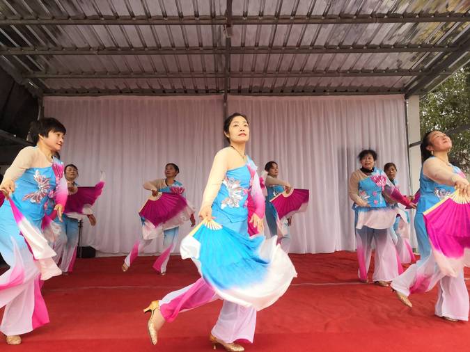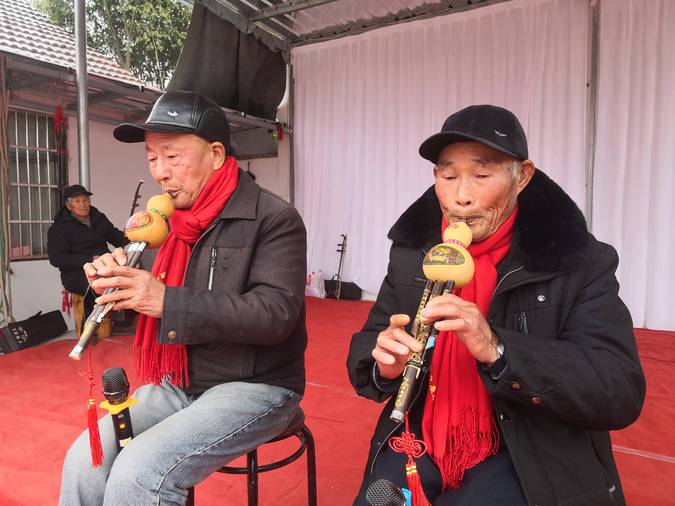 这个舞台上,村民们可以随时上台表演,他们不需要正式的演出服装,也不需要音乐伴奏,吹、拉、弹、唱皆是他们自己组织……节假日里,他们自娱自乐,表达自己对伟大祖国、伟大的党的热爱之情。(朱海兵)