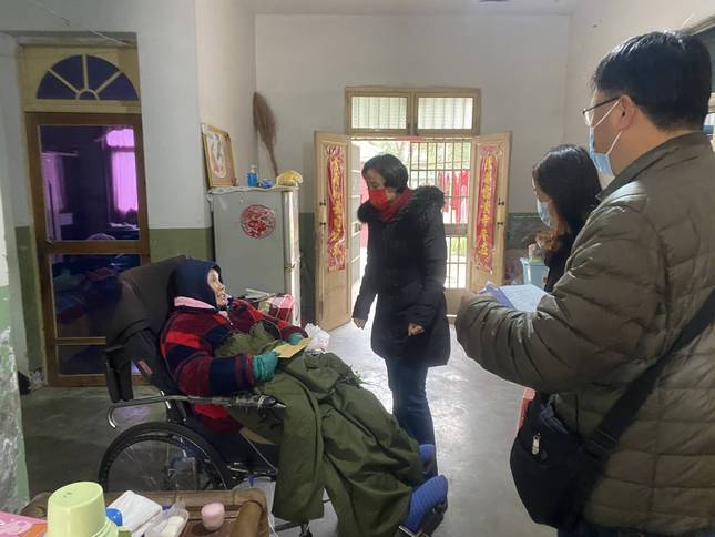 丁芳凤与儿子两人生活,本人因车祸导致瘫痪,并患有各种后遗症,儿子在读书,家庭生活非常困难。陈黄梅与丁芳凤亲切交谈,了解其家中情况,询问健康状况,叮嘱她好好保养身体,并送上慰问金500元,希望能够帮助她多买点年货,与儿子过个快乐的春节。