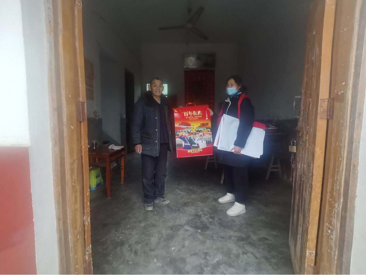 蔡铺村李正组的鲁成元是一位退伍老军人,同时又是蔡铺村光荣在党50年的老党员,他接过年历后表示,每年年底村干部都为他们这些退伍军人上门送年历,让他们感受到党和国家的温暖。