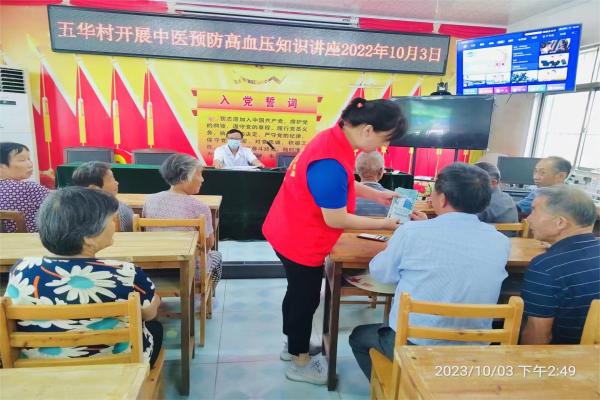 目前高血压患者是发病率最高,对人民健康危害最大的疾病之一。为关爱五华村老年人的身体健康,提高老年人医疗卫生知识,9月3日五华村结合村卫生所开展中医预防高血压知识讲座。