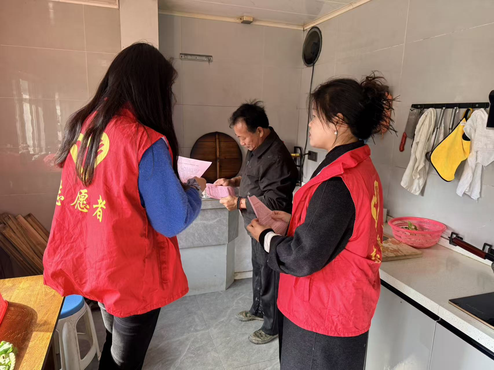 在村民家中,志愿者们不仅细致讲解安全知识,更主动帮村民排查安全隐患。“您家这个插线板插了太多电器,容易超负荷发热,建议换个功率大些的,而且要定期检查线路老化情况。”在独居老人张奶奶家,志愿者发现客厅插线板负载过重,当即提出整改建议,并帮忙将闲置电器插头拔掉。针对使用瓶装液化气的村民,志愿者重点检查了软管是否老化、接口是否密封、灶具是否合格等情况,现场演示如何正确关闭阀门以及燃气泄漏时的应急处理方法,“先关阀门、再开门窗、别开电器、及时报警”的口诀让村民们熟记于心。