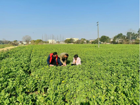 在新平社区的一处小麦田里,成片的小麦苗青青郁郁,长势喜人。然而,随着气温回升,病虫害防治和春季田间管理成为农户们的“心头事”。了解到这一情况后,社区的“土专家”们主动请缨,深入田间“把脉问诊”。“李师傅,你看这片麦叶,边缘有点发黄,结合这几天的天气情况,施肥和用药的时间节点得把控好。”有着多年种植经验的“田秀才”汪师傅蹲在田埂上,随手拔起一株麦苗,向前来取经的种植户讲解着春季管护要领。与此同时,在油菜种植片区,油菜花含苞待放,“土专家”们正手把手指导农户肥料施用、病虫害绿色防控等关键技术。他们不讲套话只说实话,用最直接的土方法解决最实际的“真问题”,让科学的种植技术在泥土里生根发芽。