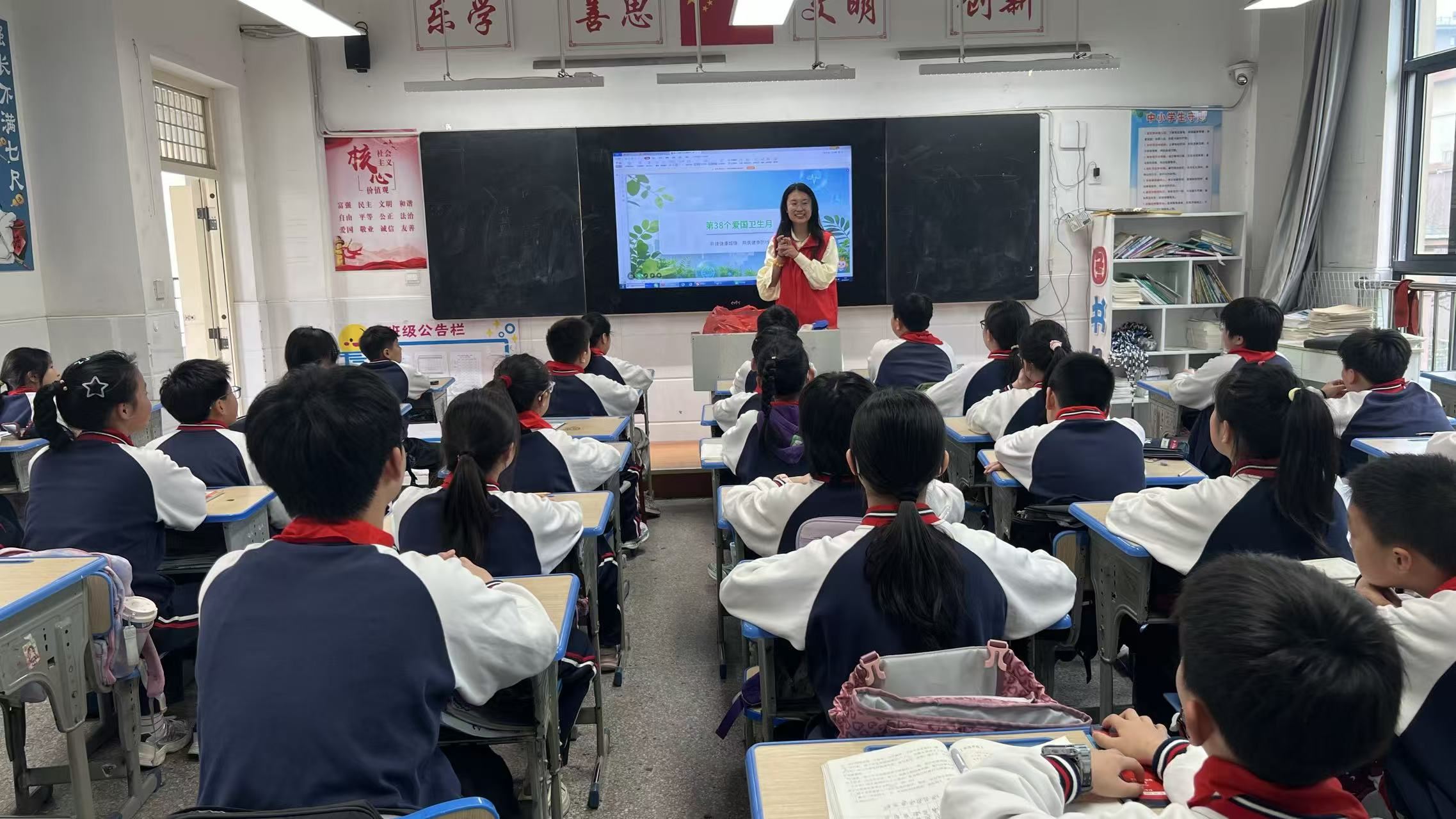 为深入开展爱国卫生运动,普及健康卫生知识,引导青少年树立文明健康、绿色环保的生活理念,在第38个爱国卫生月来临之际,繁阳镇新化社区走进繁昌二小,开展以“共建健康城镇 共筑健康防线”为主题的爱国卫生月宣传活动,以校园宣讲的形式,将健康知识送到孩子们身边。