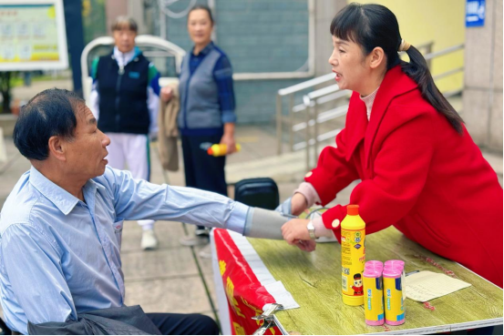 在“爱心义诊”区域,医护人员们耐心细致地为每一位前来参加活动的老人测量血压、检测血糖。他们不仅认真记录数据,还针对每位老人的身体状况,提供专业的健康咨询和日常饮食建议。对于血压或血糖偏高的老人,医护人员会贴心叮嘱他们注意定期监测,必要时及时就医。这项服务让老人们对自己的健康状况有了更清晰的了解,感受到了来自社区的“健康守护”,倍感安心。