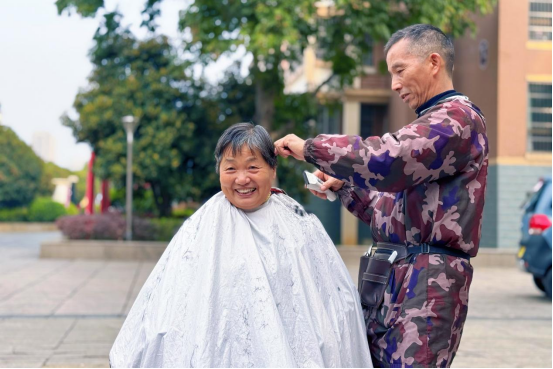 一旁的“爱心义剪”点位同样人气十足。志愿者理发师们技艺娴熟,动作轻柔,一边认真为老人修剪头发,一边与他们亲切唠家常。伴随着剪刀的“咔嚓”声,老人们原本有些凌乱的头发变得整齐利落,精神面貌也焕然一新。理完发的李奶奶对着镜子照了又照,满意地说:“这发型剪得真好,显得我更精神了!重阳节免费理发,社区想得太周到了!”