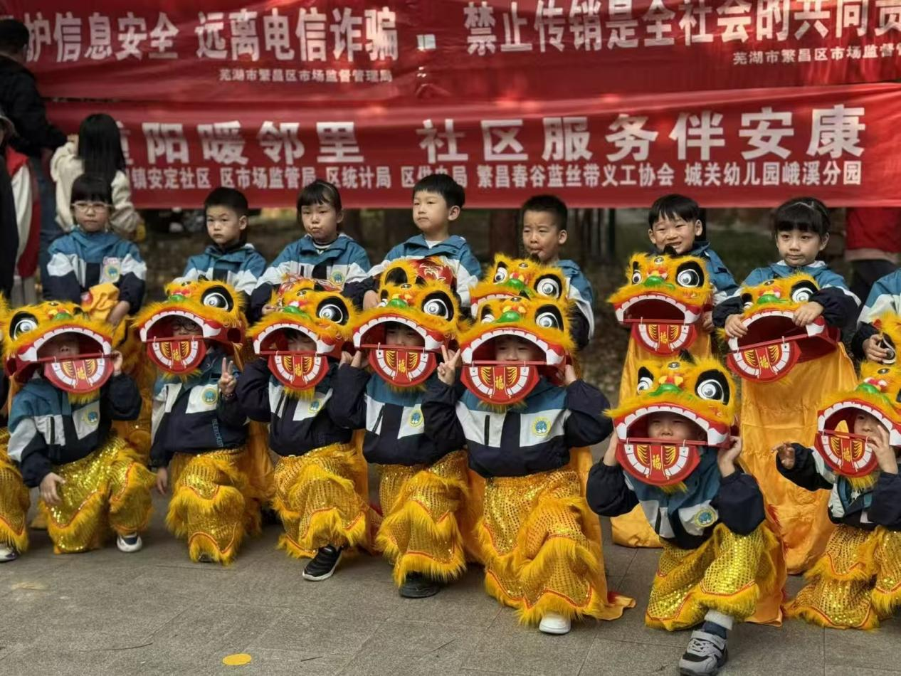 活动的另一大亮点,是来自城关幼儿园峨溪分园的小朋友们带来的精彩表演。一场充满童真与活力的舞狮表演将现场气氛推向了高潮,铿锵的锣鼓音乐、可爱的舞狮,引来了阵阵掌声与喝彩。另一边的孩子们在老师的指导下用空气黏土做出了一朵朵美丽的向阳花,由老师包成花束后,孩子们手捧鲜花,走向在场的爷爷奶奶,将一支支象征着爱与敬意的鲜花送到他们手中,并用稚嫩的声音送上节日祝福。这一刻,尊老敬老的美德在温馨的互动中得以传承,现场构成了一幅老少同乐、和谐友爱的感人画卷。