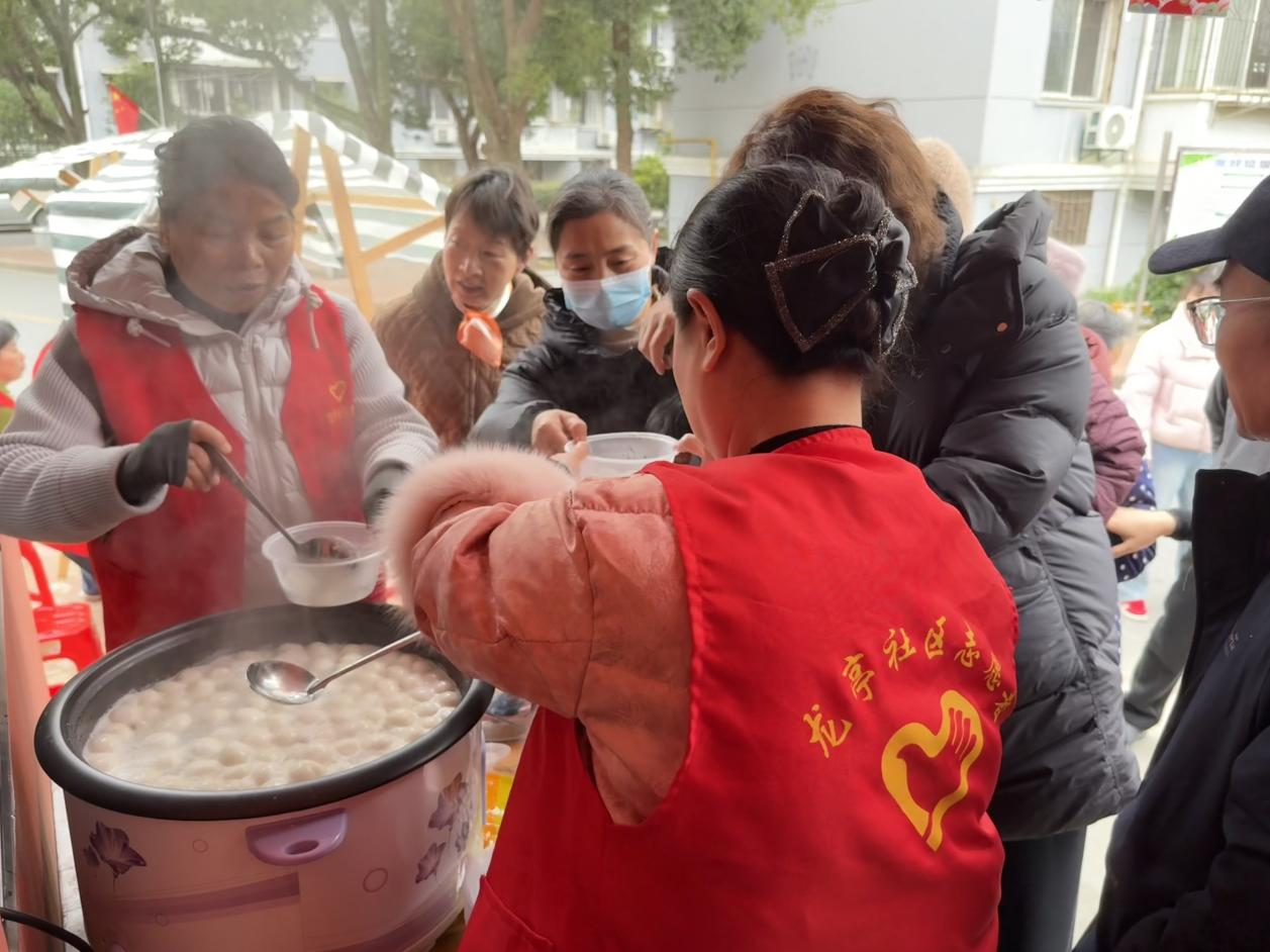 温情传递不间断,文明新风润心田。活动的温暖不止于站点内。考虑到辖区内部分高龄、独居老人行动不便,社区工作者与志愿者们组成的“送温暖小分队”特意带着刚煮好的元宵和节日祝福,敲响了老人们的家门。每到一户,他们都详细询问老人的身体状况和生活需求,叮嘱老人注意保暖。与此同时,另一路志愿者则走上街头,将一碗碗热腾腾的元宵送到正在寒风中坚守岗位的环卫工人手中,感谢他们为城市整洁付出的辛劳,并送上节日的诚挚问候。小小的元宵,传递着社区大家庭的浓浓关爱与深深敬意。