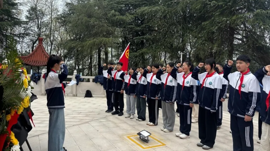 3月31日,平铺九年制学校组织党员教师、共青团员、少先队员前往繁昌荻港板子矶渡江胜利纪念广场,举行党团队一体化清明祭英烈仪式,重温峥嵘革命岁月,致敬渡江英雄先烈,传承红色精神血脉。团支部书记王梦然带领团员重温入团誓词,校党总支书记辛厚超带领党员重温入党誓词,铿锵誓言响彻纪念广场,字字千钧、掷地有声,彰显出全体党员团员不忘初心、牢记使命、勇毅前行的坚定信念与责任担当。本次活动以党团队一体化建设为抓手,将祭扫仪式与实地红色教育有机融合,打造了一堂生动深刻的“行走的思政课”,进一步增强了全体师生的历史责任感与时代使命感。