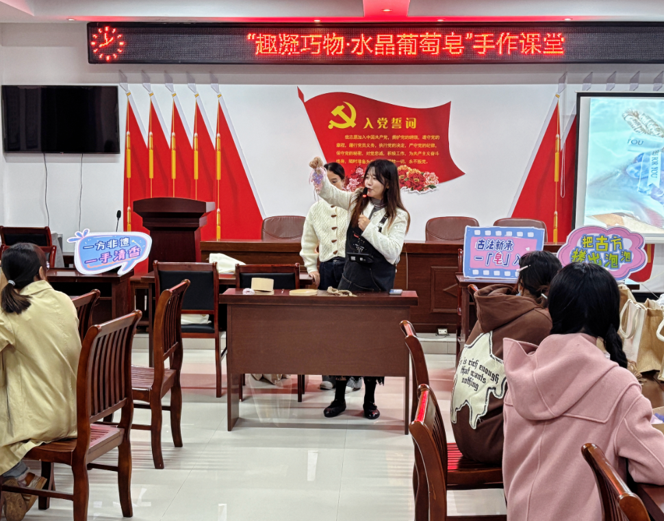 10月31日晚,繁阳镇安定社区举办了一场“趣凝巧物·水晶葡萄皂”手作课堂。本次活动特邀汇艺美术的张老师担任指导,带领学员们共同体验了一个专注创造、用心打磨的沉浸式手作之夜。