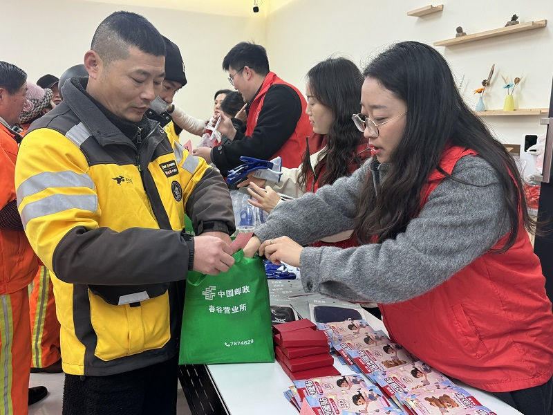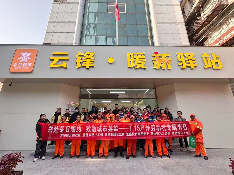 凛冬虽寒,温情暖城。1月15日,在这个专属户外劳动者的节日里,繁阳镇云路社区联合繁昌区委社工部、春谷邮政营业所、繁盛投资集团党委、蓝丝带义工协会及繁昌区总工会,于云路社区云锋暖“新”驿站举办了一场名为“共赴冬日暖约 致敬城市英雄”的暖心活动,以实际行动向环卫工人、外卖骑手、快递员等城市守护者致以崇高敬意,用贴心服务驱散冬日严寒,让温暖直抵人心。