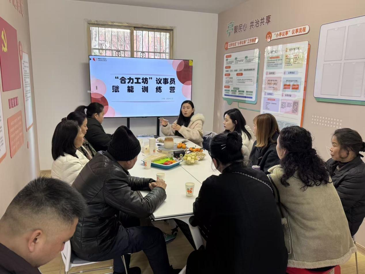 1月15日下午,龙亭社区在金鑫网格党群服务驿站举办“合力工坊”议事员赋能训练营活动,社区议事员、居民代表等齐聚一堂,共学共议共促社区治理新活力。